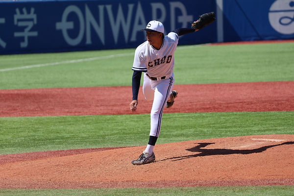 ​開幕戦の先発を飾ったのは東恩納。初回から國學院打線をノーヒットで抑える投球を見せます。